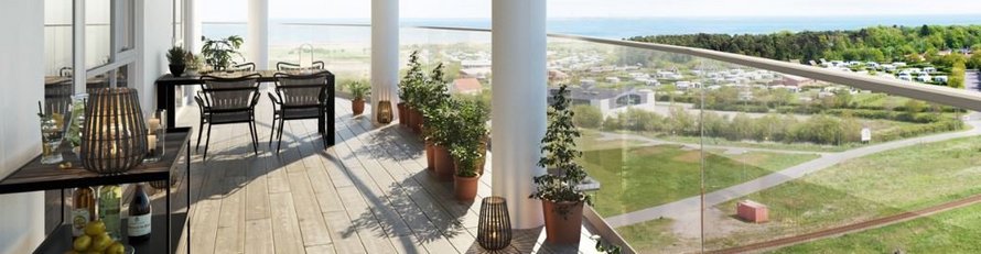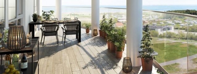De 13 private lejligheder er hver på 141 kvadratmeter plus 43 kvadratmeter altan. De koster fra 2.595.000 kroner på første etage til 4.495.000 kroner på 12. etage.