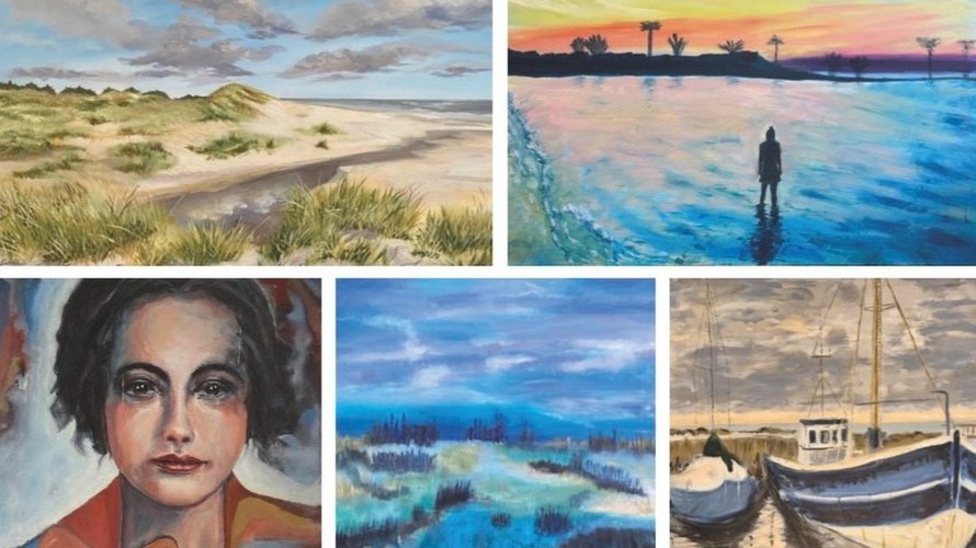 Udstillerne er FOF's malehold i Frederikshavn ved underviser Lotte Dallas Dyhrberg.