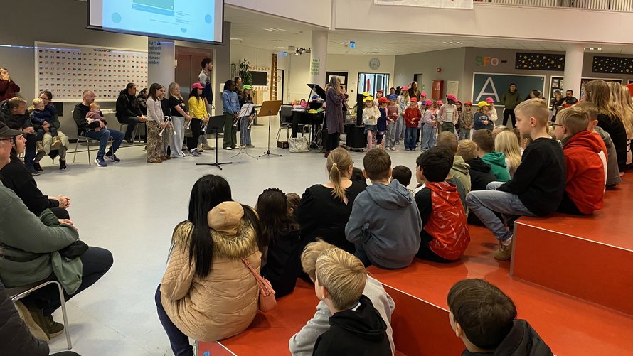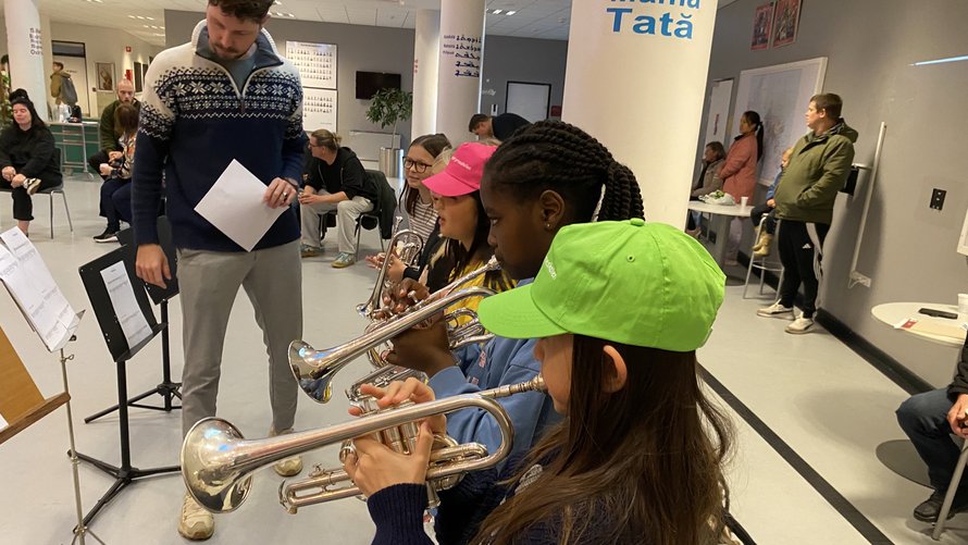 Torsdag var der musik, glæde og farver i luften på Nordstjerneskolen, da skolens trompet-hold fra 4. og 5. klasse - de såkaldte Stjerneblæsere - deltog i morgensangen i skolens hjerterum.