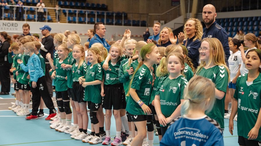 Her varmer de yngste håndboldbørn Arena Nord op. I år var der deltagelse af 75 hold fra Nordjylland.