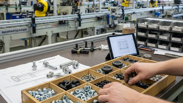 Normdele lyder måske tørt, men de er alt andet end uvæsentlige. Det handler om alt fra greb, håndhjul, skruer, bolte og møtrikker til dæmpeelementer, hængsler, fødder til maskiner, låse og mange andre små komponenter, der går igen på tværs af anlæg og maskiner.