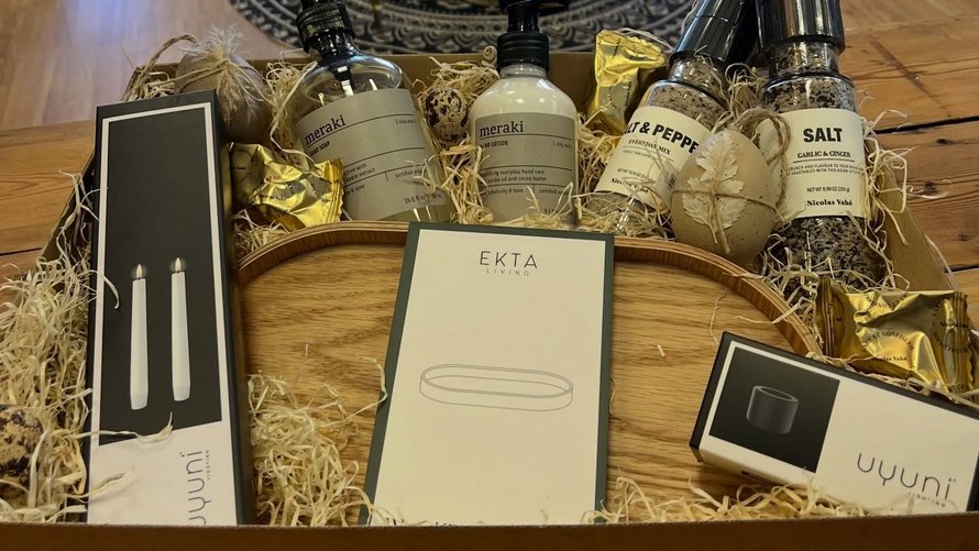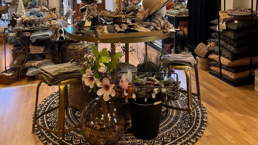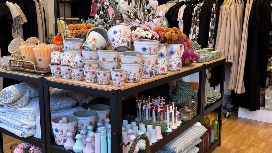 Ud over tøj sælger livsstilsbutikken brugskunst og specialiteter, og her i påskedagene er de flotte og personlige gavekurve populære.
