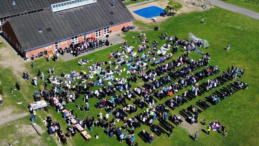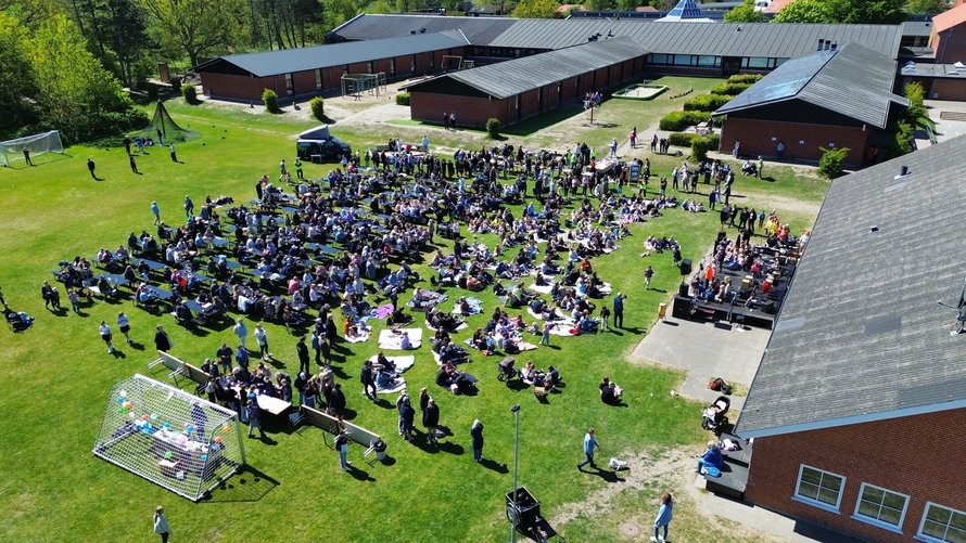 - Sådan en dag understøtter bare fællesskabet, giver læring og gode oplevelser til os alle. Det er så vigtigt, at vi i skolen beskæftiger os med fællesskab i mange sammenhænge – lige fra de små til de meget store fællesskaber som det her. Vi kan sagtens lære eleverne, hvad man kan, når vi løfter i flok, og alle giver et bidrag til fællesskabet, og så gør det jo ikke noget, at vi har det rigtig sjovt imens. Sådan en dag som i dag er noget, som vil blive husket længe af både elever, medarbejdere og besøgende, fortæller skoleleder Mogens Brag.