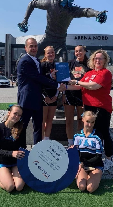 - Vi er glade for, at Spar Nord Fonden kan støtte op om en stor lokal begivenhed og være med til at hjælpe JAM Frederikshavn Cheerleaders i mål med at kunne afholde et DM. Vi ved også, at et sådant gulv vil kunne bruges i mange år - blandt andet også, når JAM skal være vært for JUPECUP i november 2025, udtaler Mette Mølgaard fra Spar Nord.