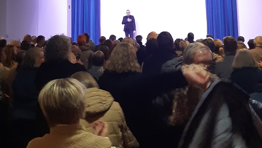 Stående bifald til Hans Pilgaard, som gæstede Frederikshavn Gymnasium