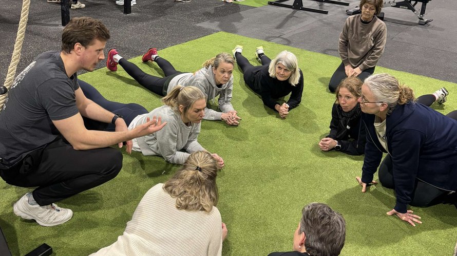 Den sidste time blev brugt på gulvet i små grupper, hvor deltagerne arbejdede ud fra rigtige smerteproblematikker hos meddeltagerne og i fællesskab hjalp hinanden frem til den bedste tilgang til træningen.