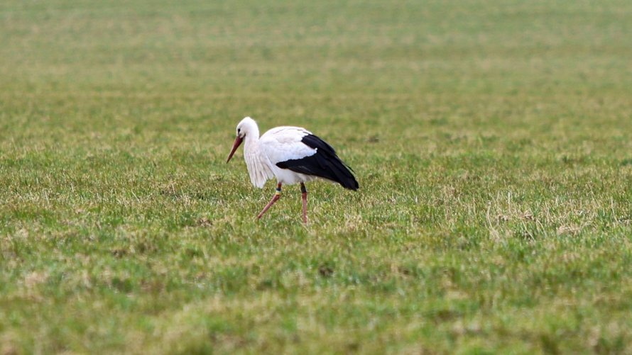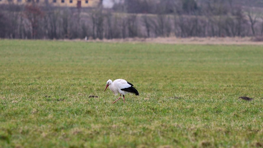 Stork har slået sig ned på mark tæt på Knivholt Hovedgaard