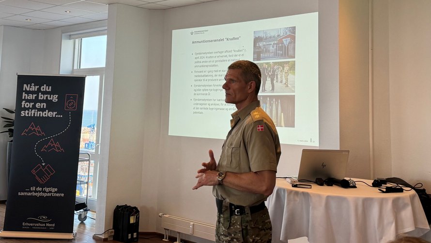 - Ejendomsstyrelsen overtager officielt "Krudten" 1. april 2024. Krudten er erhvervet, fordi der er et politisk ønske om at genetablere en national ammunitionsproduktion, fortalte Anders Mærkedahl Pedersen.