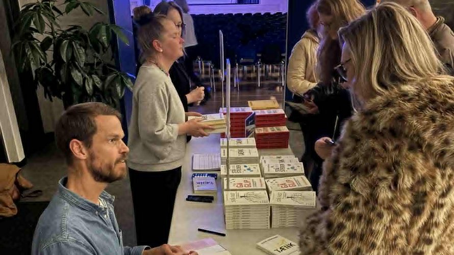 Svend Brinkmann sluttede sin aften i Frederikshavn med at signere bøger, der blev/bliver solgt via Frederikshavn Boghandel.