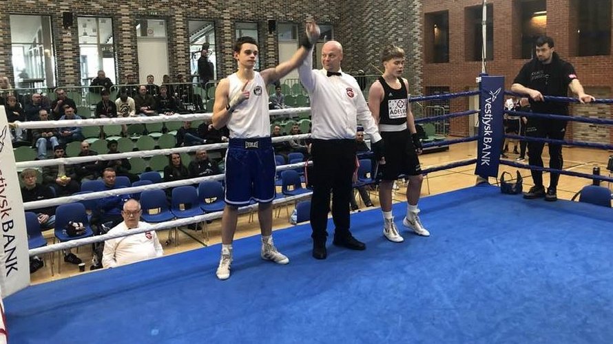 Jan Jensen strøg til tops i U15-weltervægt. Han udboksede i finalen sin et år yngre modstander, Bastian Sejer, Lindholm BK.