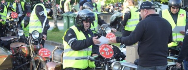 De flotte gamle motorcykler kan opleves Kristi Himmelfartsdag (18. maj) fra cirka kl. 8.45 til 10.15 på parkeringspladsen på Trafikcenter Sæby Syd.