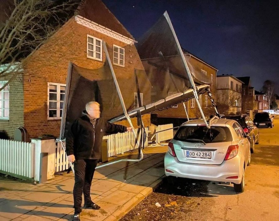 Stormen Malik kostede i værste fald Jan Langthjem fra Frederikshavn en bil på grund af en vildfaren trampolin, hvis ejer indtil videre er ukendt.