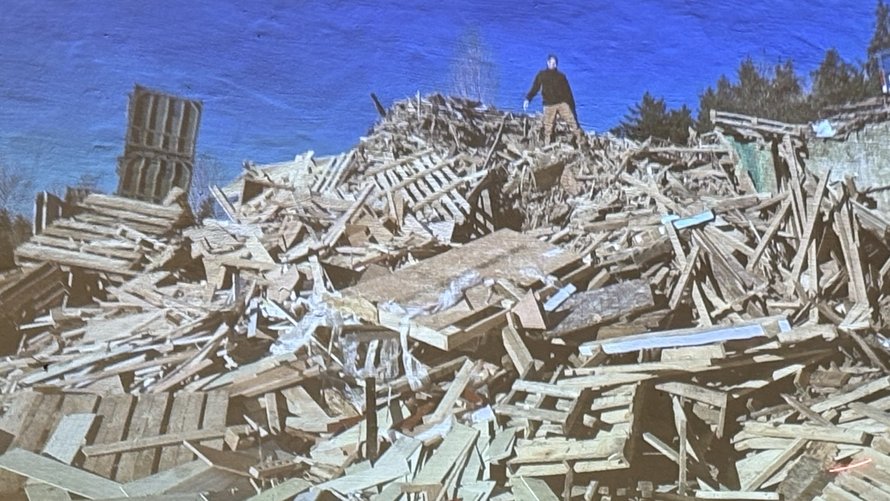 Genbrugspladsen var og er som et byggemarked for Thomas Dambo. Han viste de gæsterne billeder af sine mange værker igennem tiden.