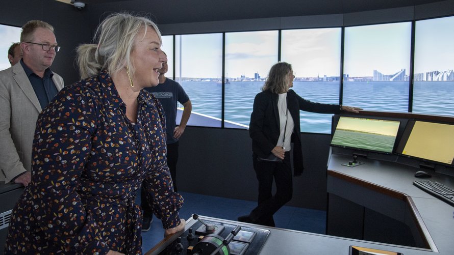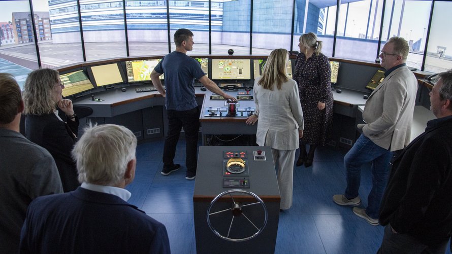 Som en del af besøget fik minister Christina Egelund og byrådsmedlem Lone Haugaard (M) mulighed for at afprøve MARTECs avancerede skibssimulator, som bruges i uddannelsen af navigatører. Simulatoren illustrerer tydeligt, hvordan moderne teknologi og praktisk læring går hånd i hånd på MARTEC – en kombination, der er essentiel i uddannelsen af kompetencer til både civil og militær maritim sektor.