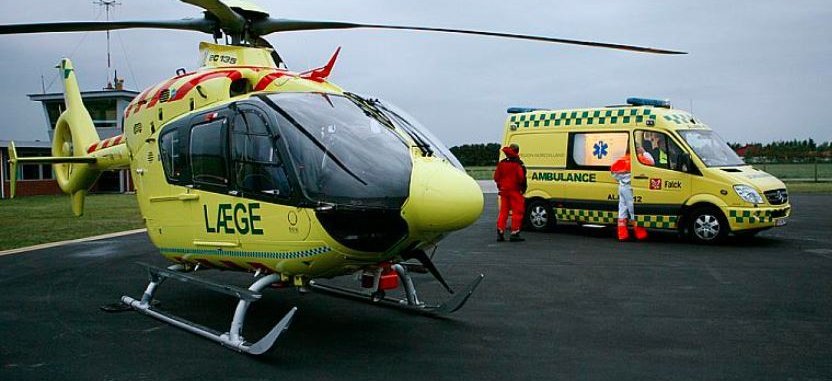 Den 27-årige blev fløjet med helikopter til Aalborg Universitetshospital.