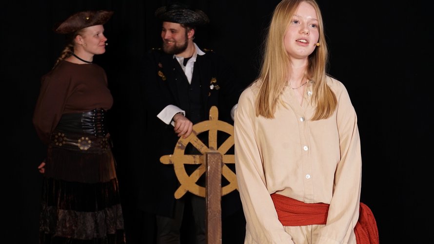 Sæby Scenens unge skuespillere tager i forestillingen "En historie fra de syv have" publikum med i en fortælling om modets mange ansigter og om sammenhold – selv når bølgerne går højt.