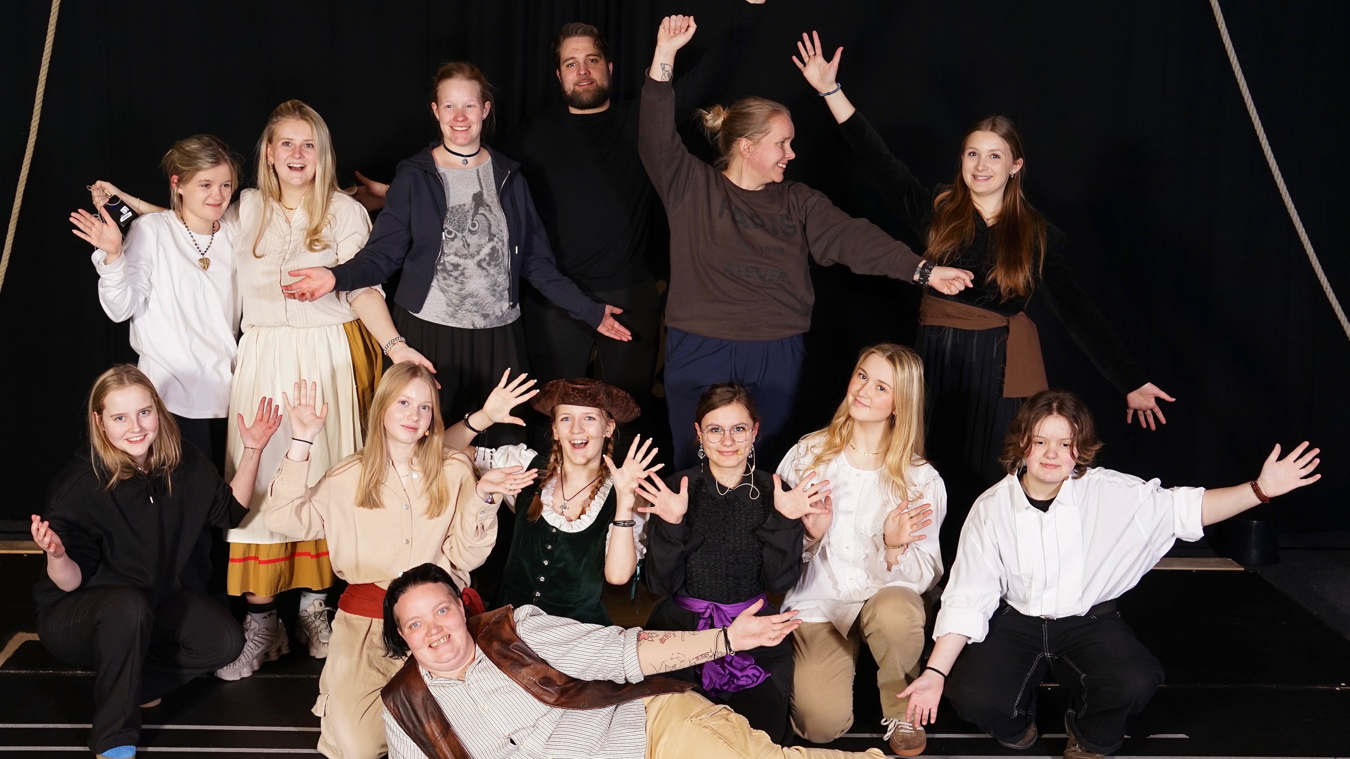 På scenen møder man 15 seje unge skuespillere, der står klar til at tage publikum med på rejsen, når de med premiere 5. marts til og med søndag 8. marts opfører forestillingen på Skovlyst i Sæby. Torsdag-fredag om aftenen kl. 19.00 og lørdag-søndag kl. 16.00.