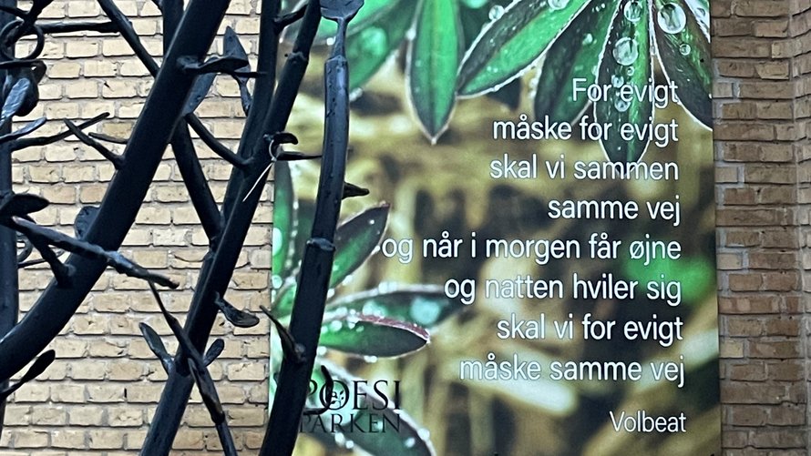 Fredag kl. 15.00 blev værk nummer 52 i Frederikshavn Poesipark - Danmarks eneste af slagsen - indviet på Fisketorvet i gågaden i Frederikshavn. Det stammer fra Vollbeat-sangen For Evigt.
