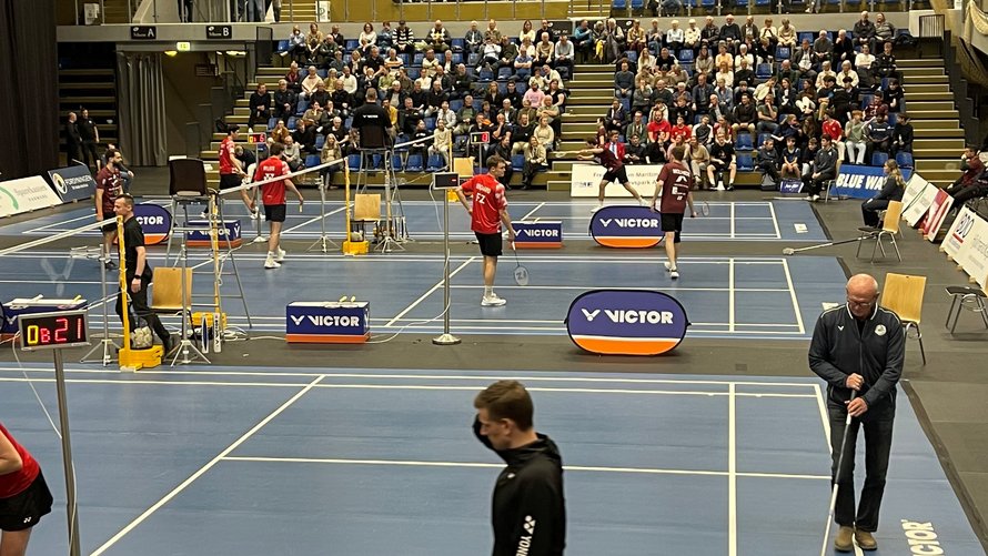 I 1. herresingle var VEB's Magnus Johannesen storfavorit mod svenskeren Felix Burestedt, men Solrød-spilleren chokerede med en føring på 17-5 i første sæt. Magnus Johannsen gjorde dog det umulige. Han vandt 15 bolde i træk og vandt 21/19, 21/15. Et uhørt comeback af vendelboen.