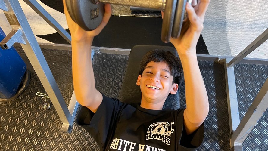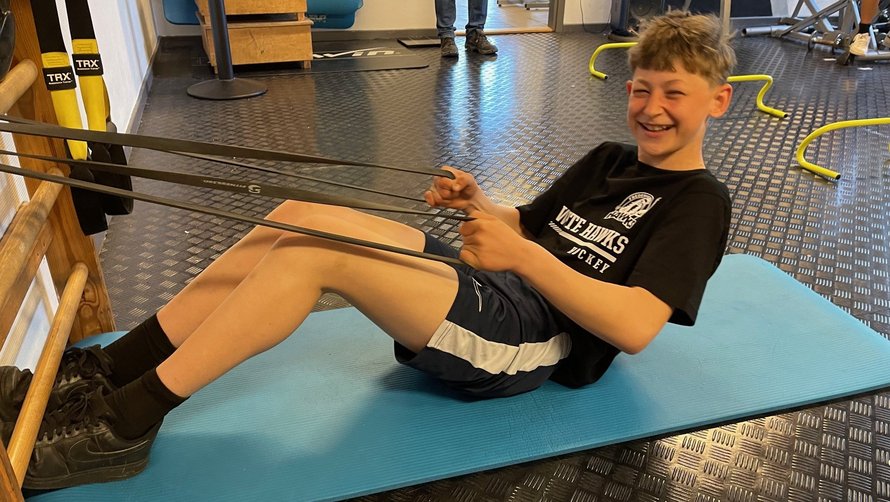 White Hawks har lavet et særligt tilrettelagt undervisningsforløb for en håndfuld elever i 6. og 7. klasse. Tre gange om ugen møder de fra morgenstunden i Iscenter Nord, hvor fysioterapeut Peter Sørensen, White Hawks, styrketræner med dem.