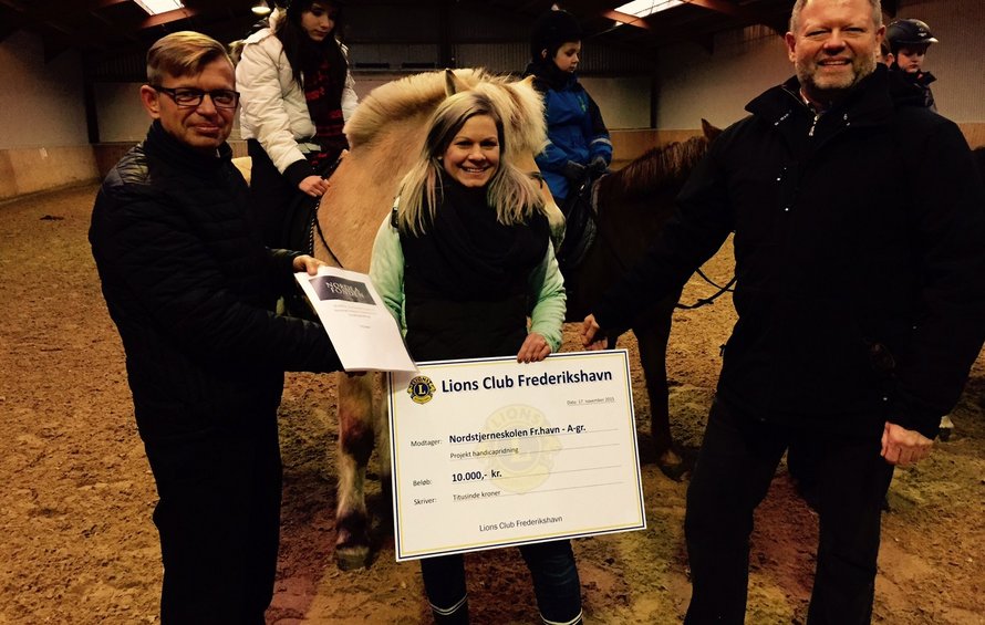 En specialklasse på Nordstjerneskolen i Frederikshavn fik i dag overrakt 30.000 kroner af Nordea Fonden og Lions Club Frederikshavn. Pengene betyder, at eleverne i klassen de næste to skoleår kan se frem til et målrettet rideforløb på Frederikshavn Rideskole.
